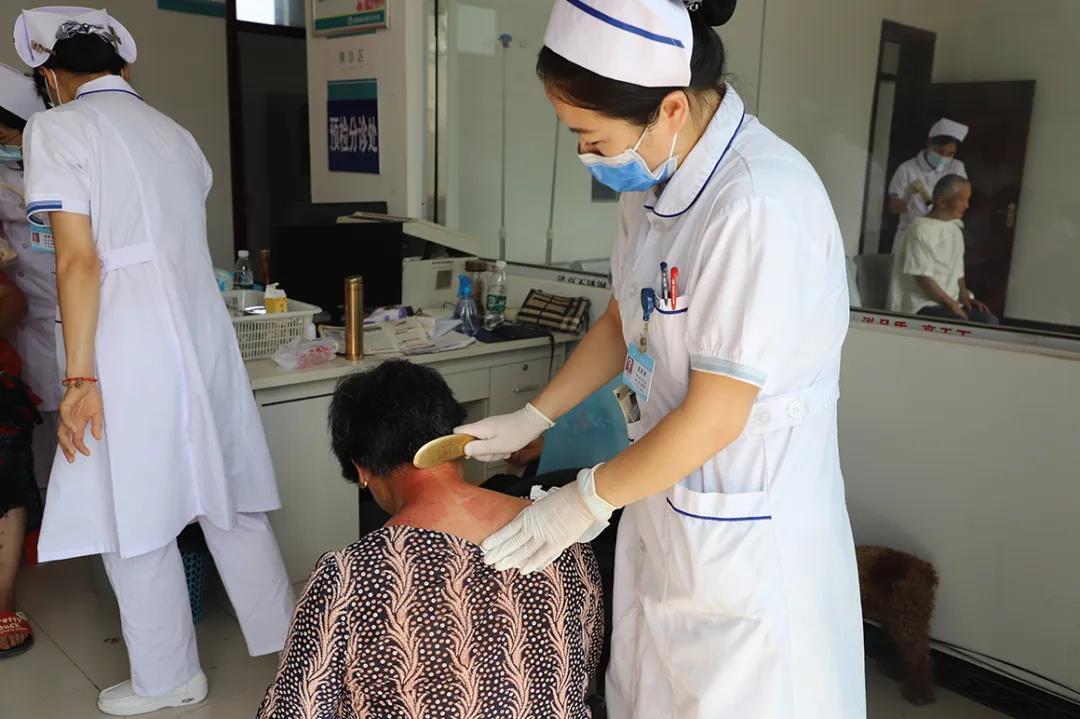 活动现场,医务人员对群众进行健康宣教,从中医角度对常见病、多发病的预防及治疗给予专业指导。同时根据不同症状施行刮痧、艾灸、拔罐等传统疗法。