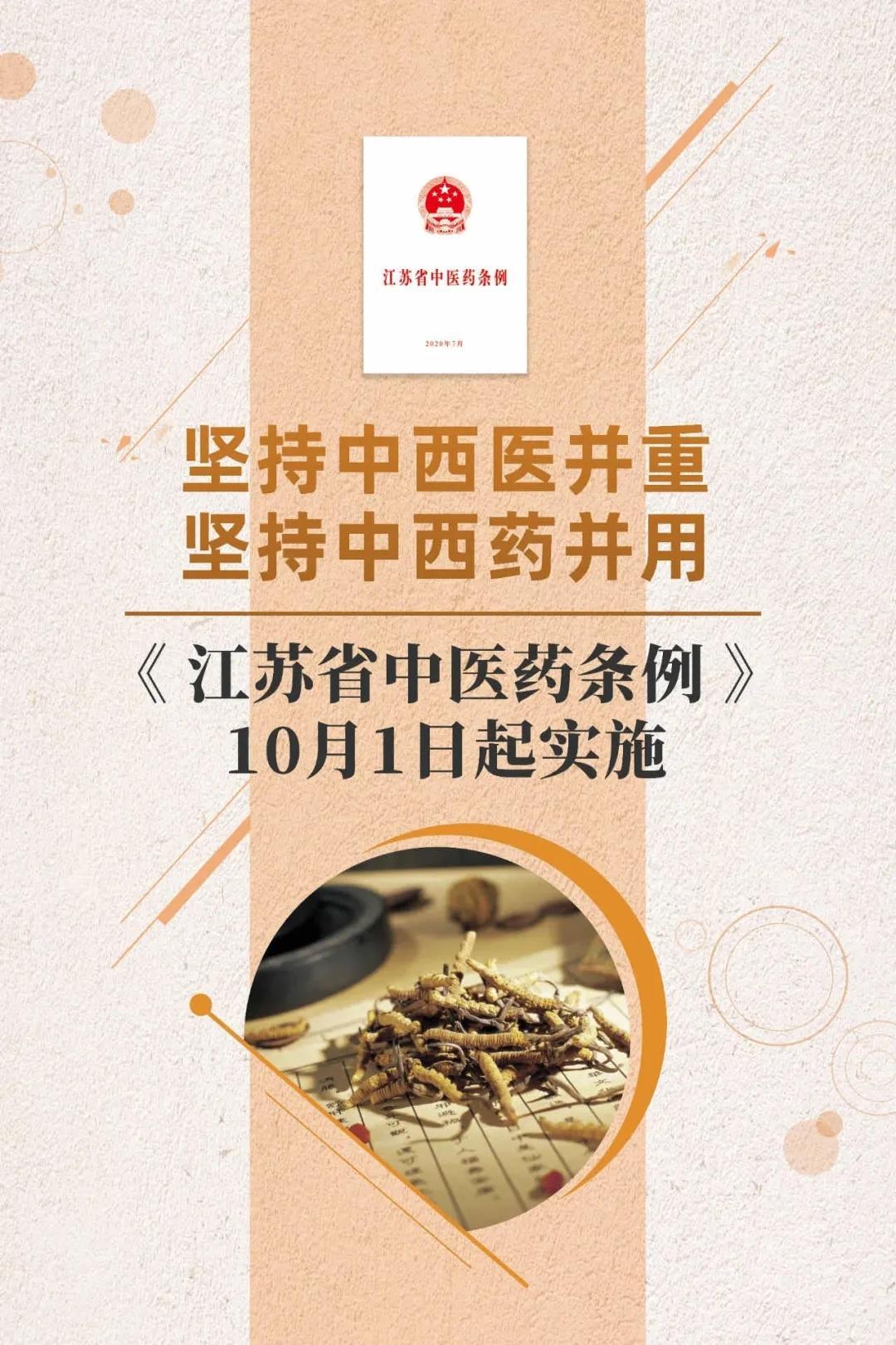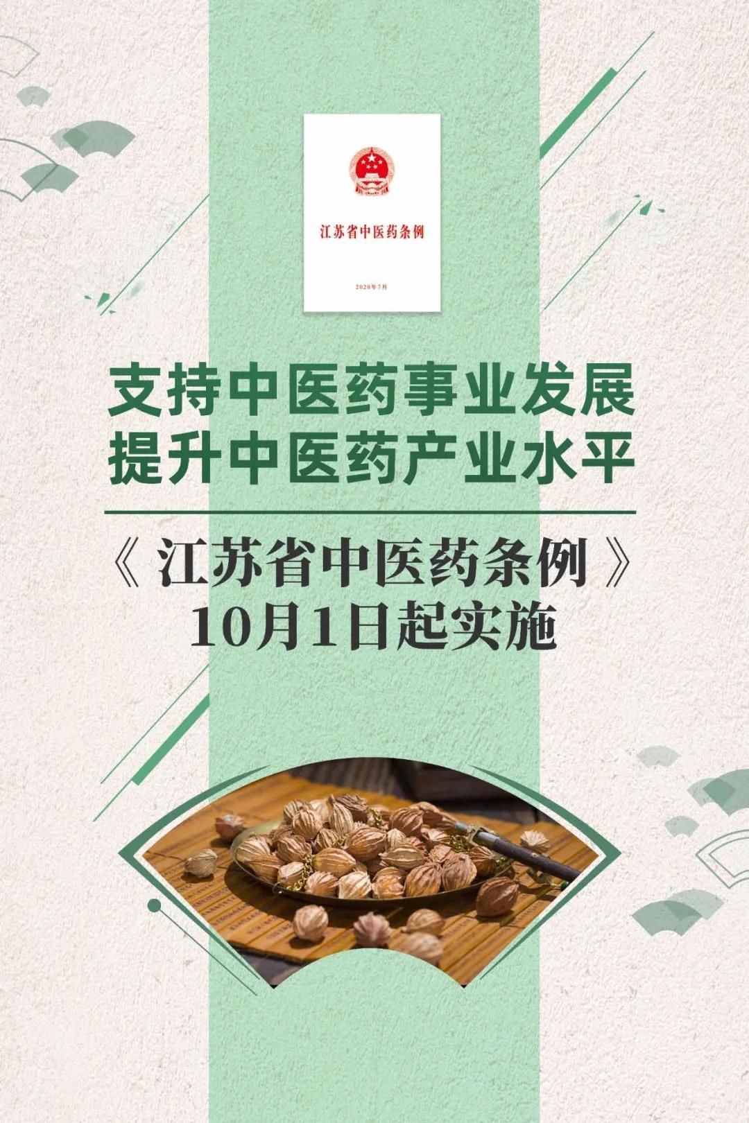 《江苏省中医药条例》于2020年7月31日经省十三届人大常委会第十七次会议审议通过,10月1日起正式施行。