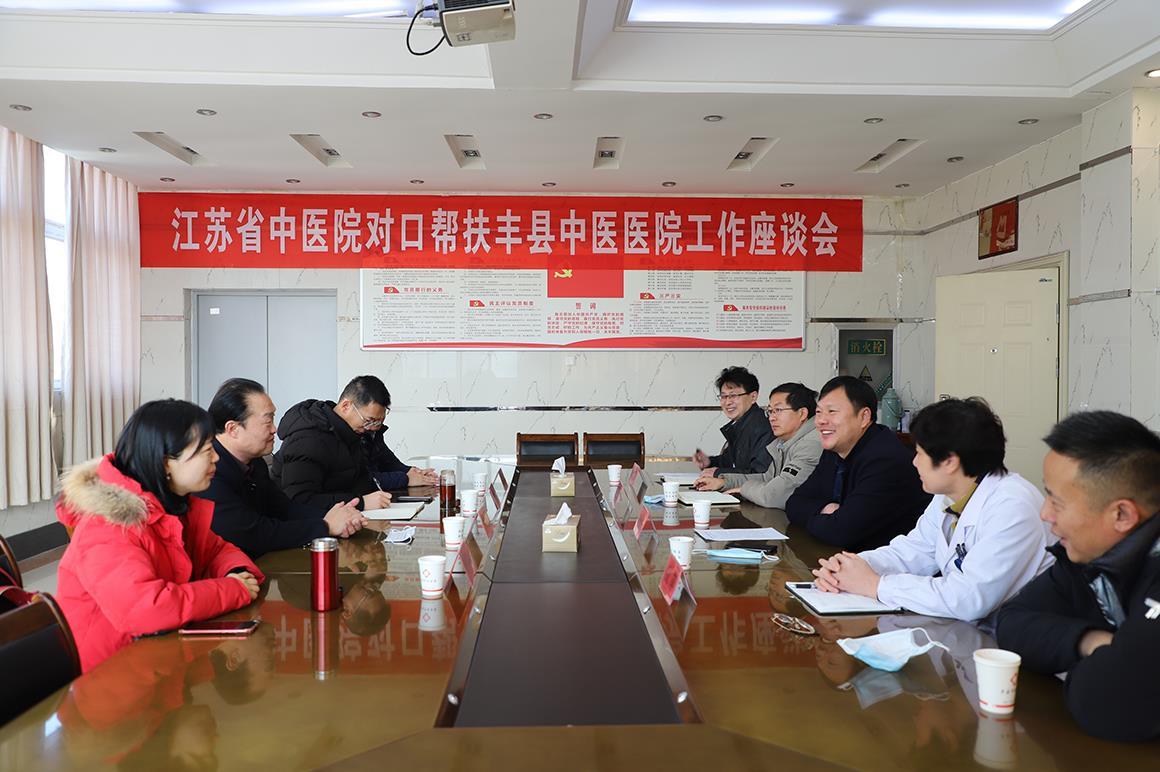 为进一步落实对口帮扶工作,在省委驻丰帮扶队的支持下,12月13日上午,江苏省中医院督学办主任韩旭、重点项目办副主任时孝春、李秀源、大外科办公室秘书杨飞朋一行四位专家来我院开展对口帮扶活动。