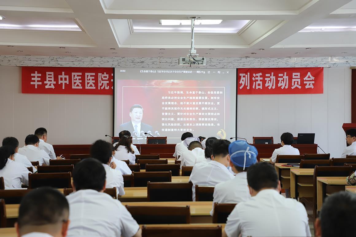 今年是第20个全国“安全生产月”,其主题是“落实安全责任,推动安全发展”。为全面贯彻落实习近平总书记关于安全生产的重要论述和对江苏安全生产工作的重要指示批示精神,根据县卫健委《关于开展2021年全县卫生健康系统“安全生产月”活动的通知》,全面做好医院安全防控工作,增强职工的安全事故防范处置意识,5月31日下午,我院召开”安全生产月”系列活动动员会,院领导班子、全体中层干部参会。