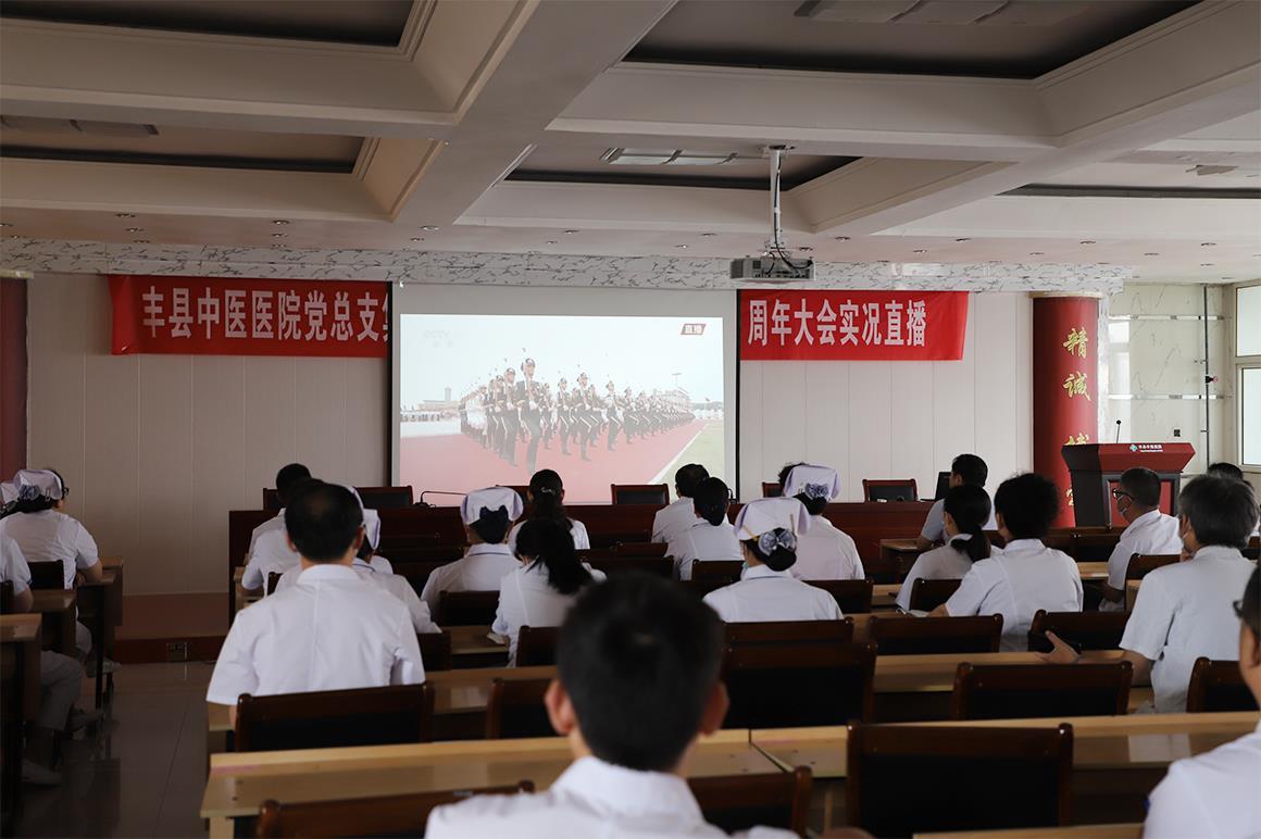 丰县中医医院领导班子带领全院党员干部职工集体观看“庆祝中国共产党成立100周年大会”现场直播。观看现场,大家心情格外激动,掌声不断,引发强烈反响。