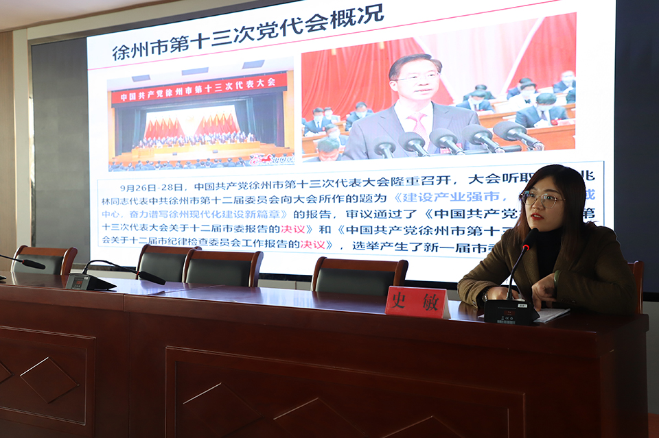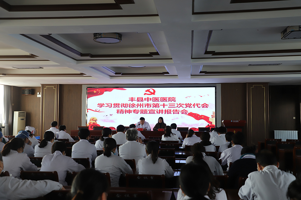 为全面学习贯彻落实徐州市第十三次党代会精神,迅速把医务工作者的思想和行动统一到党代会精神上来,11月25日下午,丰县中医医院召开学习贯彻徐州市第十三次党代会精神宣讲报告会,邀请县委宣讲团成员、县委党校讲师史敏作专题宣讲报告,院党总支书记、副院长李永峰主持报告会。院班子成员、全体党员、中层干部参加会议。