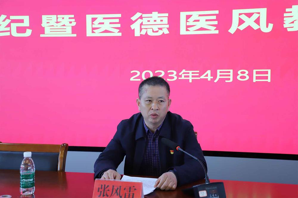 会上,张风雷同志以《救死扶伤,廉洁从医,争做一名新时代好医生》为题,从争做一名新时代好医生的重大意义、坚持问题导向、树立正确的权力观,争做一名新时代好医生等三个方面,以生动的语言和真实的案例对医德医风建设作了精彩阐释,对全面学习贯彻党的二十大精神与习近平新时代中国特色社会主义思想,起到了很好的促进作用。