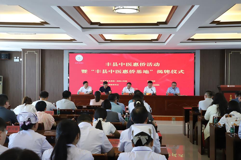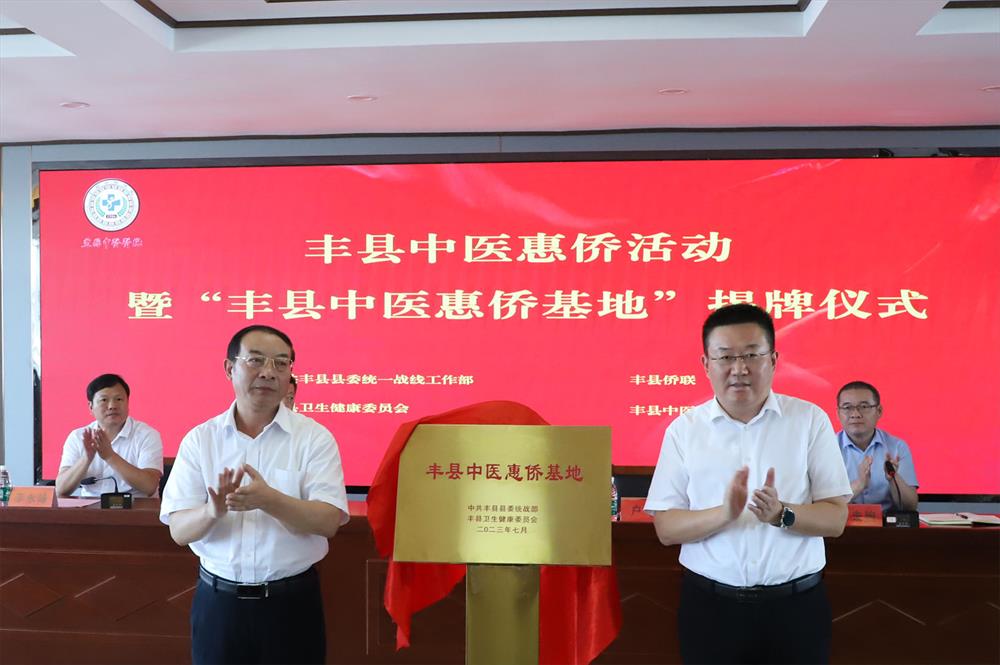 为传承弘扬中华传统中医药文化,7月7日上午,由县委统战部、县卫健委联合举办的丰县中医惠侨活动暨“丰县中医惠侨基地”揭牌仪式在丰县中医医院举行。县委统战部副部长宋来熙主持会议,徐州市委统战部副部长、市侨办主任朱绍锋,县委常委、县委组织部部长、统战部部长户磊,县卫健委主任王琦出席揭牌仪式。