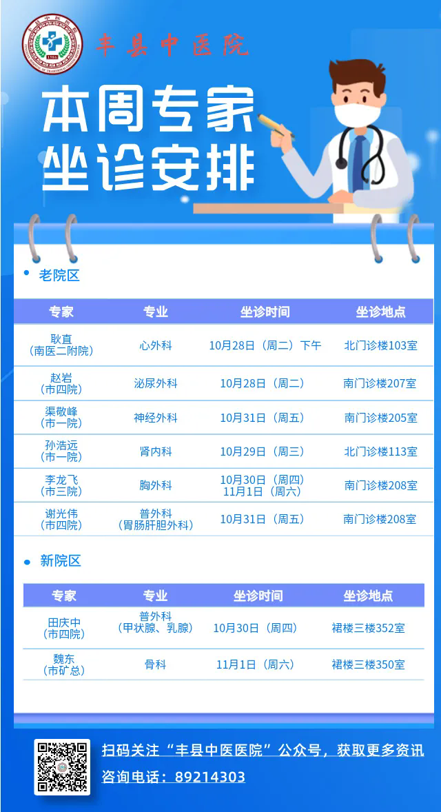 本周专家坐诊安排(10.20-10.26)
