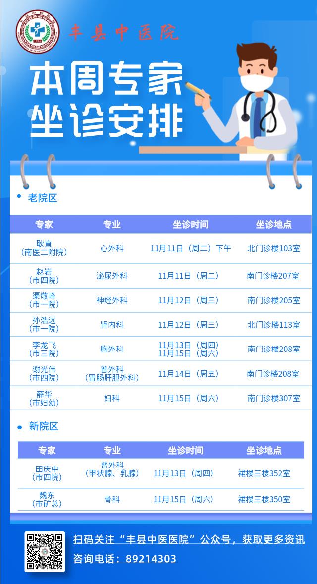 本周专家坐诊安排(11.10-11.16)