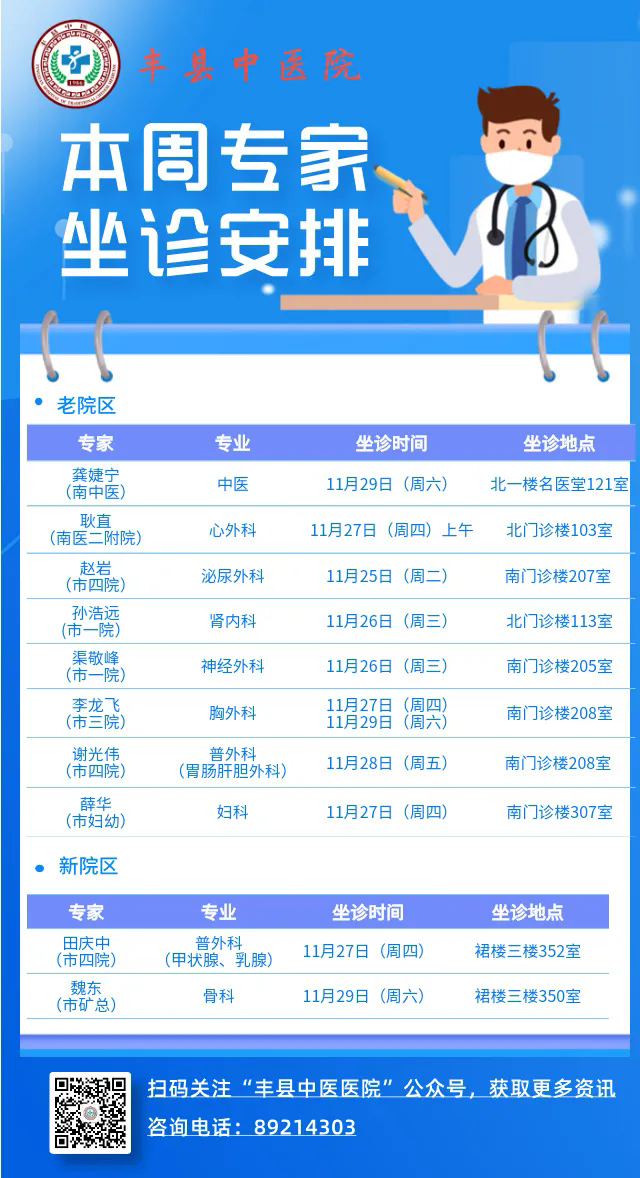 本周专家坐诊安排(11.24-11.30)