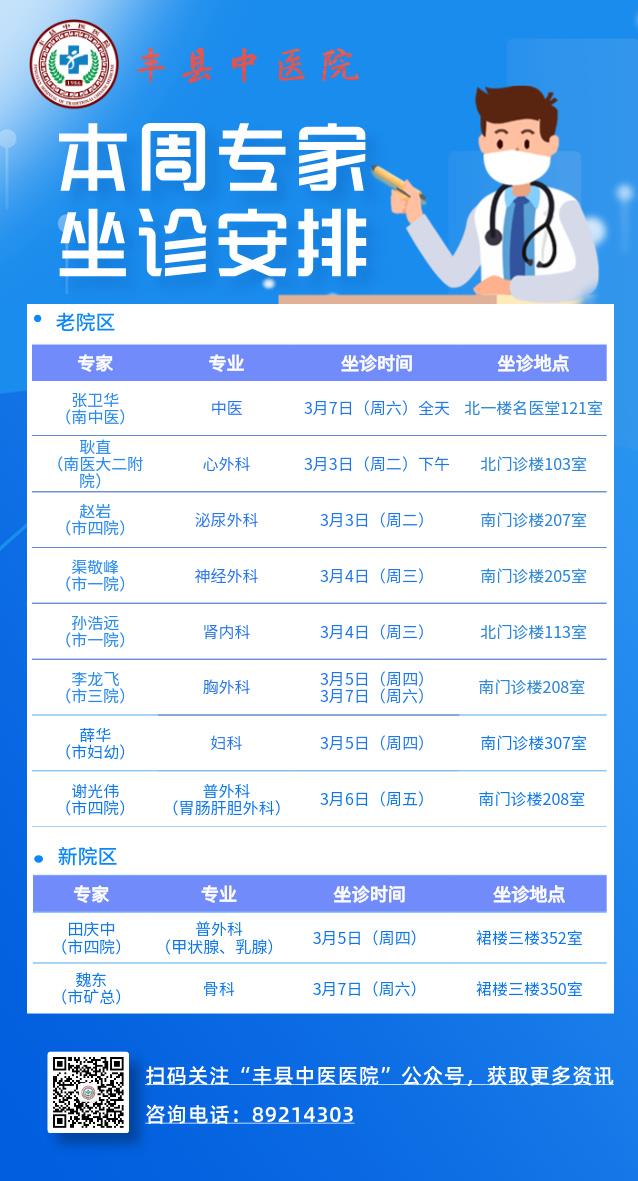 本周专家坐诊安排(2.23-3.1)