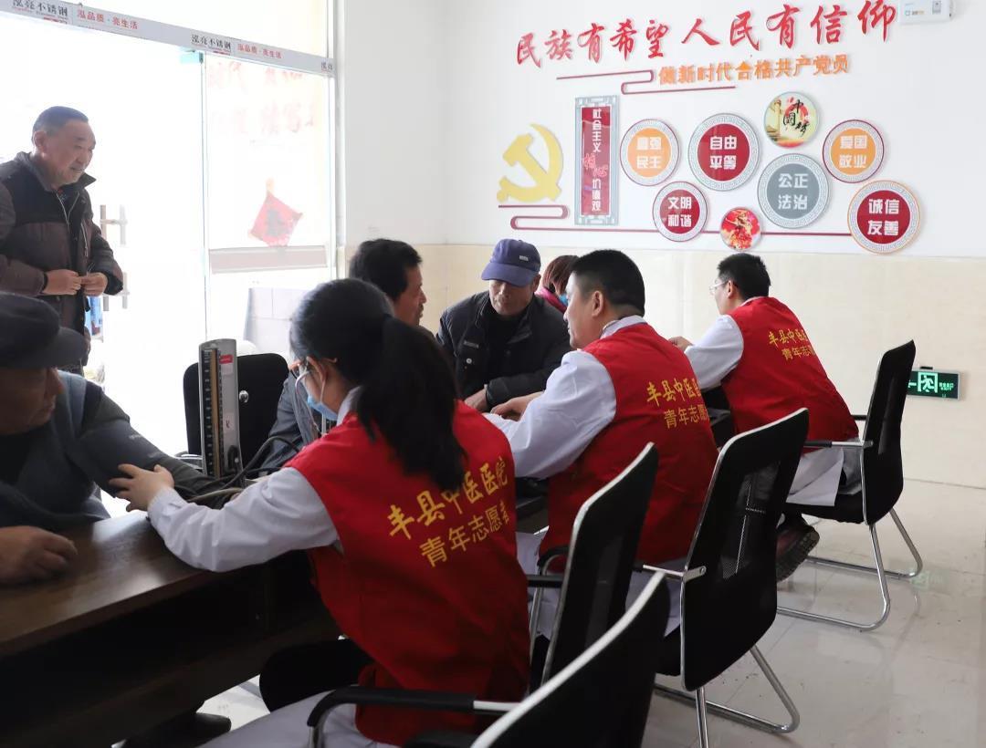 2019年4月25日,省驻丰扶工作队联合丰县中医医院深入欢口镇史庄村和顺河镇马庄村,开展“中医药就在你身边”健康义诊活动。
